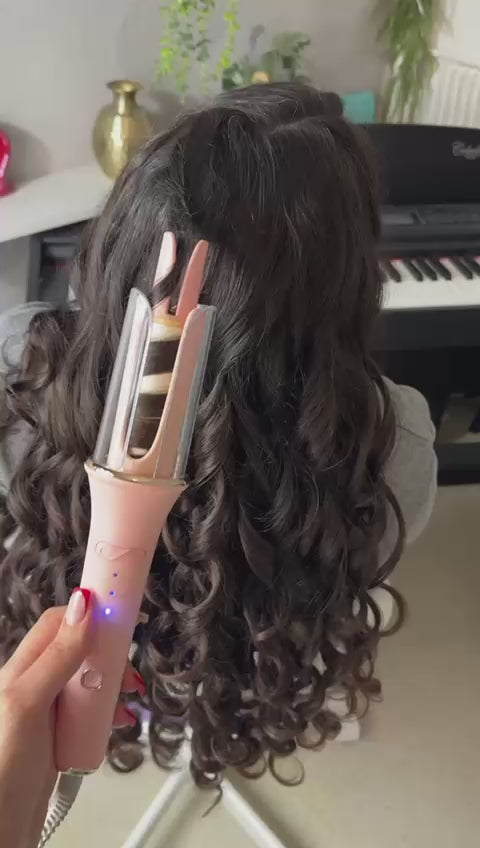 C'est très simple ! Insérez une mèche de cheveux dans l'appareil, appuyez sur le bouton et le boucleur fait tout automatiquement à 360°. En quelques secondes, vous obtenez une boucle parfaite sans effort ni compétence particulière requise.